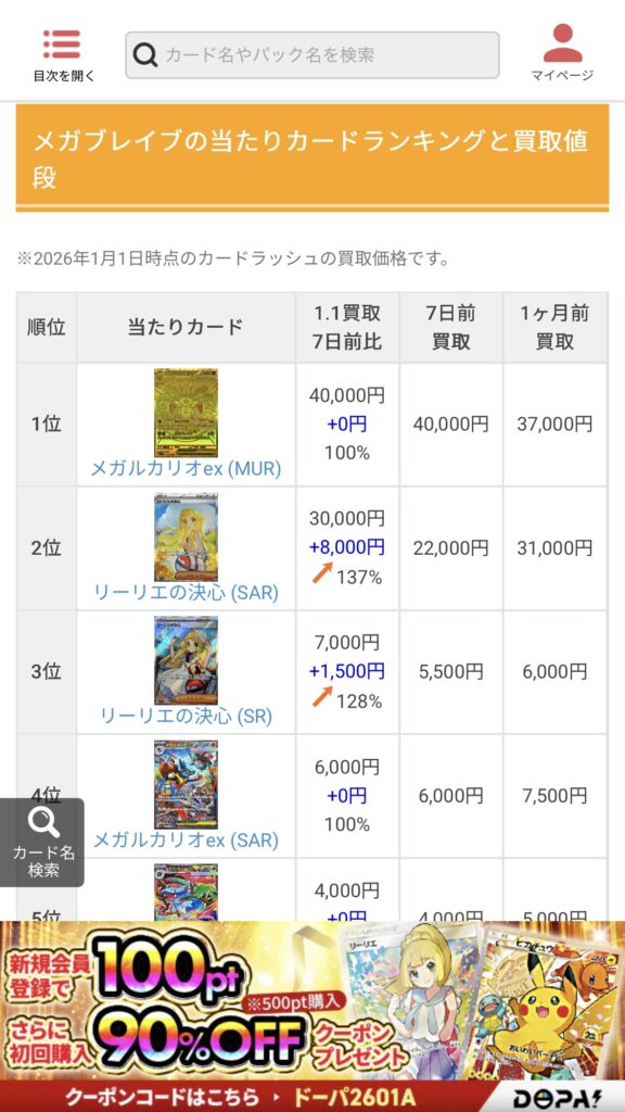 そんな悩みを解決してくれるのが、月間約1,000万PVを誇るポケモンカード相場メディア