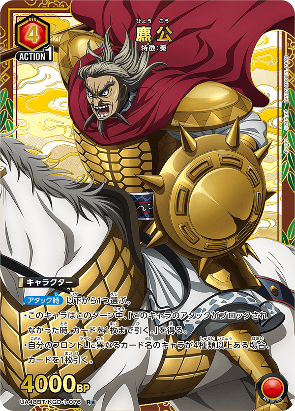信・嬴政をはじめとする人気キャラクターたちがカード化され、原作さながらの迫力あるバトルを楽しめる注目ブースターです!